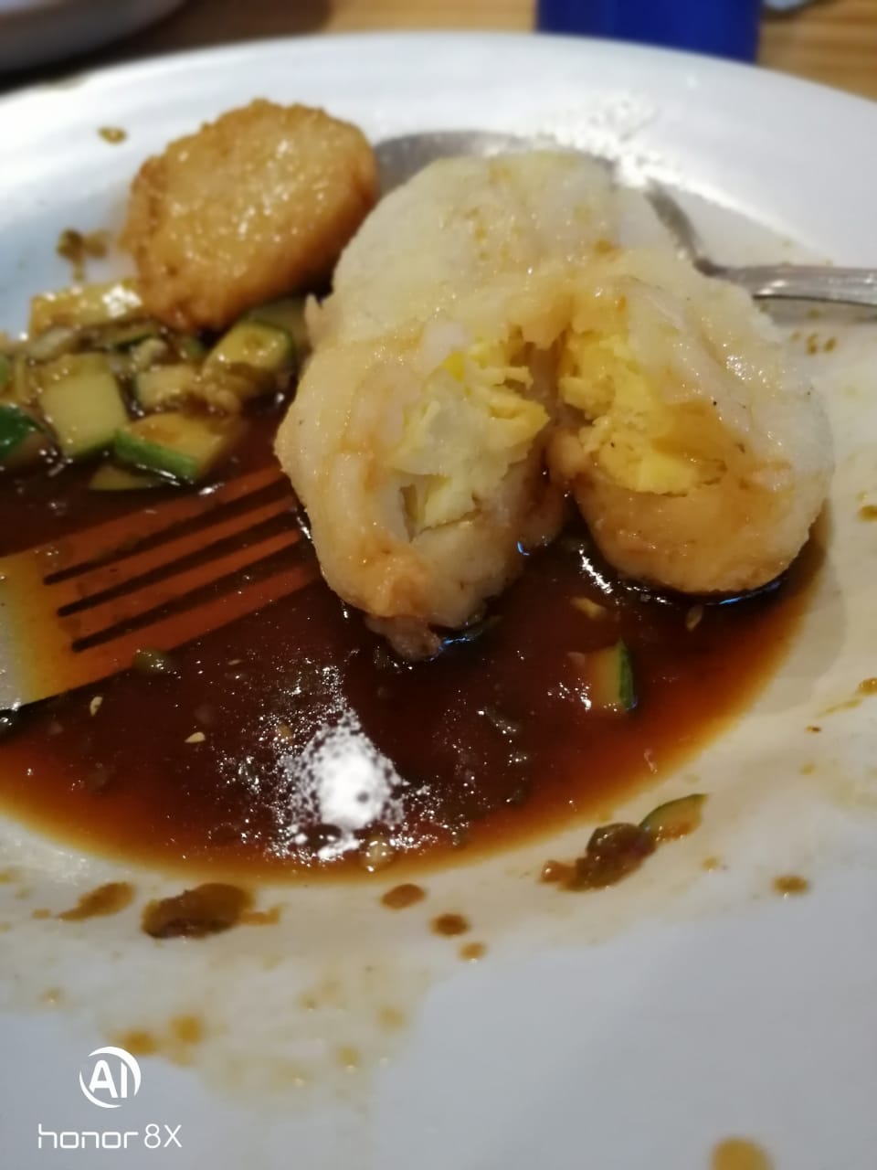 Satu persatu aku campurkan pempek nya kedalam piring cuko yang sudah ku tambahin tiga sendok sambel hijau yang tersedia di meja, rasanyaa gak mau berhenti ngunyaahh gaesssss  hahahhahaha . Pempek kapal selam nya pas di belah, duhh itu telor nya nonggol, temenku nanya suka pempek apa Ndah?? Aku jawab semuaa ..