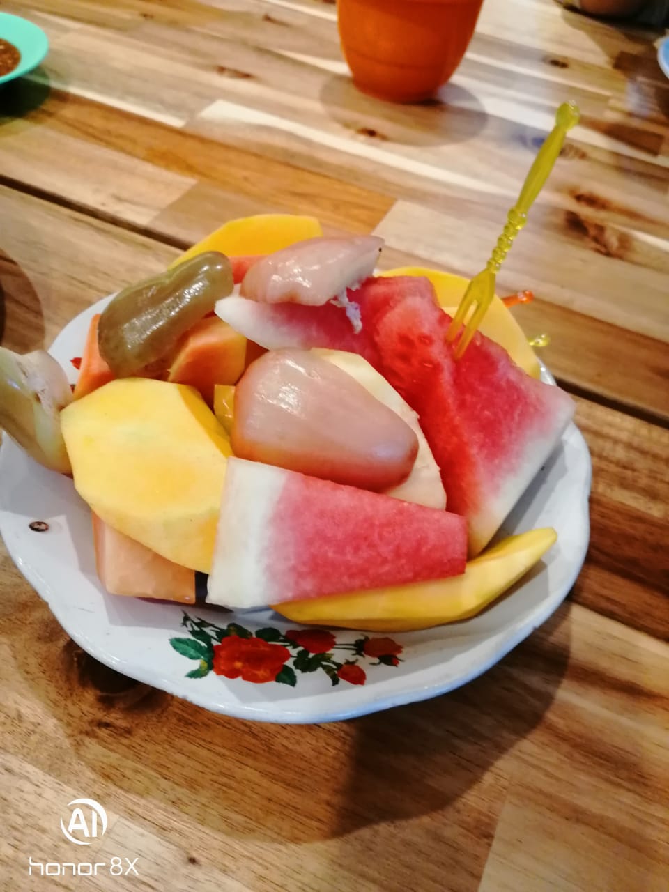 Selain Pempek, salah satu temanku si Lina memesan sepiring buah potong untuk pencuci mulutnya dan itu bener-bener passs bangettttt , abis makan pempek yah kann terus di akhiri dengan buah.